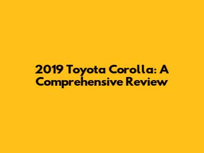 2019 Toyota Corolla: A Comprehensive Review