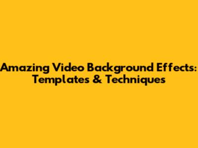 Amazing Video Background Effects: Templates & Techniques