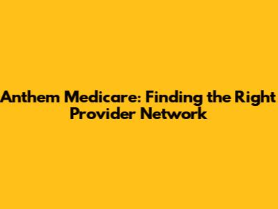 Anthem Medicare: Finding The Right Provider Network