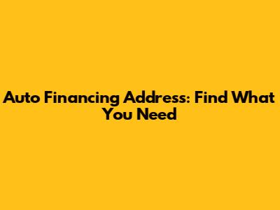 Auto Financing Address: Find What You Need