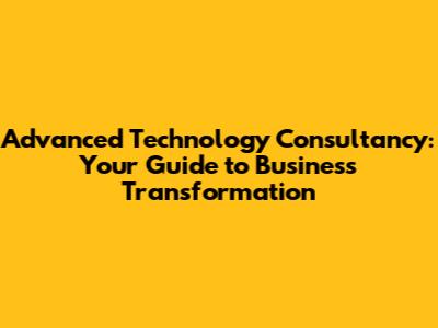 Why You Need Advanced Technology Consultancy