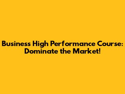 Business High Performance Course: Dominate The Market!