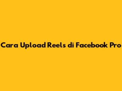 Cara Upload Reels Di Facebook Pro