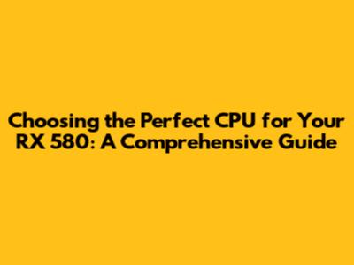 Choosing The Perfect CPU For Your RX 580: A Comprehensive Guide