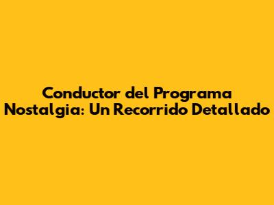 Conductor Del Programa Nostalgia: Un Recorrido Detallado