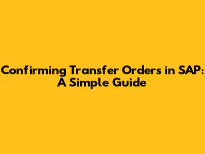 Confirming Transfer Orders In SAP: A Simple Guide