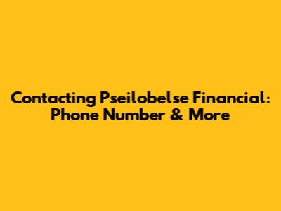 Contacting Pseilobelse Financial: Phone Number & More