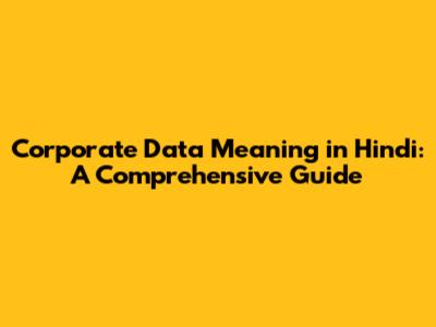 Corporate Data Explained: Hindi Meaning & Key Insights