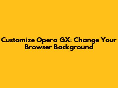 Step-by-Step Guide to Changing Your Opera GX Background
