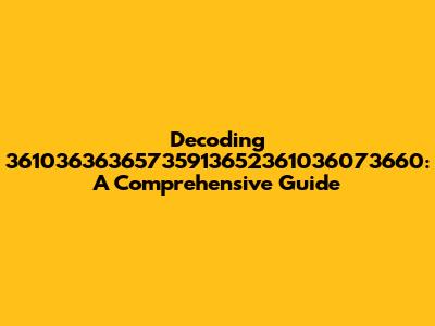 Decoding 36103636365735913652361036073660: A Comprehensive Guide