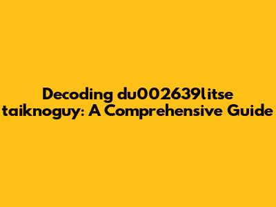 First, we can divide the string into two main parts: "du002639" and "litse taiknoguy". The first part, "du002639," consists of a combination of letters and numbers. This could indicate a specific identifier, a version number, or a coded reference. The presence of numbers might suggest that it's related to a database entry, a product code, or some other structured system. The second part, "litse taiknoguy," looks more like a series of letters, which could be a mangled word, a phonetic spelling, or a piece of jargon. By analyzing each part separately, we can start to form hypotheses about the overall meaning of the string. For example, if "du002639" is a product code, then "litse taiknoguy" might be a description of that product. Or, if "du002639" is a version number, then "litse taiknoguy" might be a set of instructions or parameters that apply to that version. It's all about looking for connections and patterns that can help us piece together the puzzle.