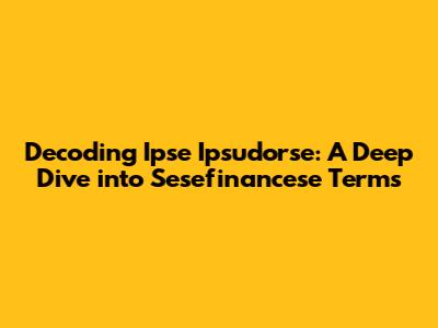 Decoding Ipse Ipsudorse: A Deep Dive Into Sesefinancese Terms