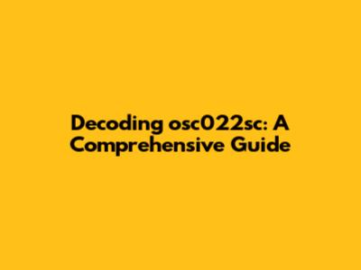 Decoding Osc022sc: A Comprehensive Guide