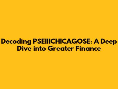 Alright, folks, let's dive into something that might sound like a secret code but is actually a fascinating area of finance. We're talking about PSEIIICHICAGOSE and its connection to greater finance. Now, before you start thinking this is some kind of government conspiracy, let's break it down and make it super easy to understand. This is going to be an engaging journey, so buckle up!