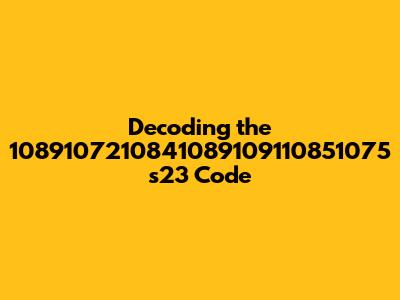 Hey guys! Ever stumbled upon a mysterious string of numbers and letters that just made you scratch your head? Today, we're diving deep into decoding the enigmatic "1089107210841089109110851075 s23" code. Sounds like something out of a sci-fi movie, right? Well, let's break it down and see if we can make some sense of it all. So, buckle up, and let's get started!