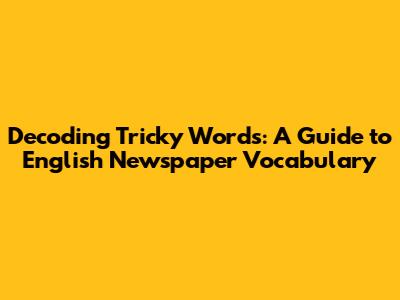 Decoding Tricky Words: A Guide To English Newspaper Vocabulary