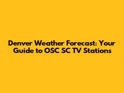 Denver Weather Forecast: Your Guide To OSC SC TV Stations