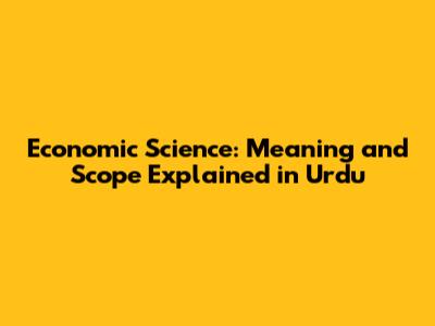 Economic Science: Meaning And Scope Explained In Urdu