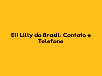 Eli Lilly Do Brasil: Contato E Telefone