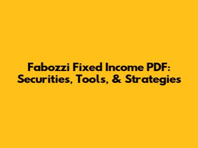 Fabozzi Fixed Income PDF: Securities, Tools, & Strategies