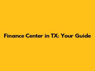 Finance Center In TX: Your Guide