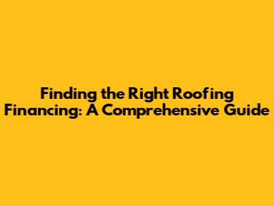 Finding The Right Roofing Financing: A Comprehensive Guide