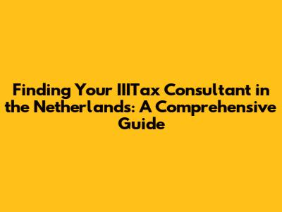 Finding Your IIITax Consultant In The Netherlands: A Comprehensive Guide
