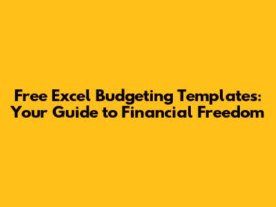 Free Excel Budgeting Templates: Your Guide To Financial Freedom