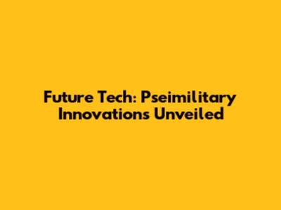 Future Tech: Pseimilitary Innovations Unveiled