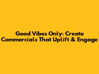 Hey guys! Ever wondered how those commercials just instantly put a smile on your face and leave you feeling all warm and fuzzy inside? It's not just luck, my friends! It's the magic of good vibes commercials! In this guide, we're diving deep into the art of crafting commercials that not only grab attention but also leave a lasting positive impression. We'll explore the key ingredients, the secret sauce, and how to whip up advertisements that resonate with audiences on an emotional level, making them feel happy, hopeful, and, most importantly, connected to your brand. So, grab a cup of coffee (or tea!), settle in, and let's unlock the secrets to creating commercials that radiate positivity and generate some serious good vibes.