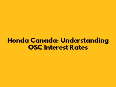 How Do OSC Rates Affect Honda Financing in Canada?