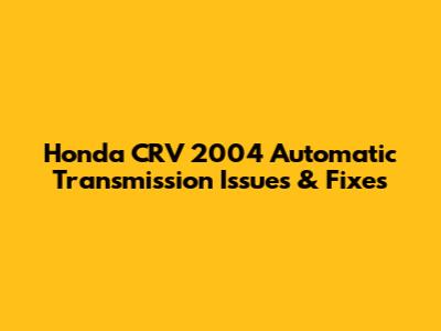 Honda CRV 2004 Automatic Transmission Issues & Fixes