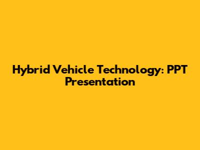 Hybrid Vehicle Technology: PPT Presentation