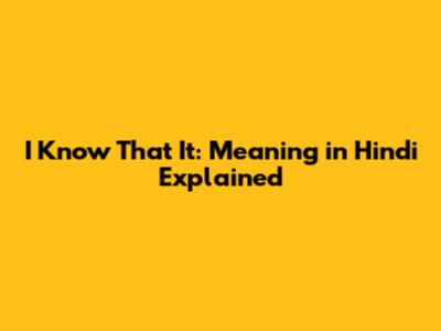 I Know That It: Meaning In Hindi Explained