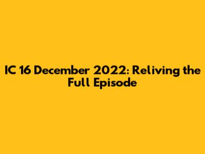 Hey everyone! Let's dive into the IC 16 December 2022 full episode. For those who might have missed it, or just want a refresher, we're going to break down the key moments, highlights, and everything in between. This episode was packed with action, drama, and probably a few laughs – you know, the usual! So, grab your snacks, get comfy, and let's get started. We'll explore the main storylines, the standout performances, and the overall impact of this particular episode. Ready? Let's go!