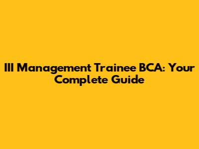 III Management Trainee BCA: Your Guide