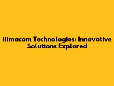 Iiimacom Technologies: Innovative Solutions Explored