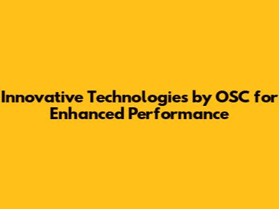 Innovative Technologies By OSC For Enhanced Performance
