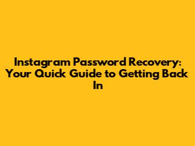 Instagram Password Recovery: Easy Steps To Regain Access