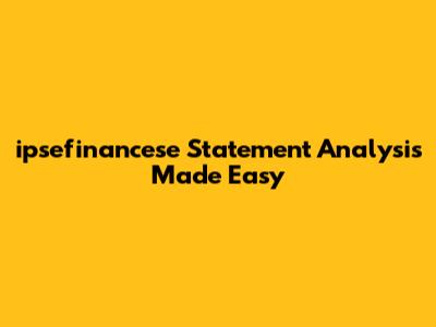 Ipsefinancese Statement Analysis Made Easy