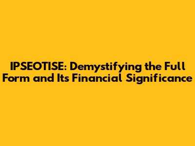 IPSEOTISE: Unveiling The Full Form And Its Financial Significance