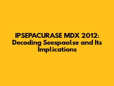 IPSEPACURASE MDX 2012: Decoding Seespaolse And Its Implications