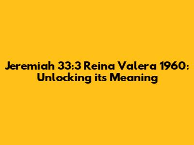 Hey guys! Today, we're diving deep into a powerful verse from the Bible: Jeremiah 33:3 in the Reina Valera 1960 (RVR1960) translation. This verse is packed with promise and encouragement, and understanding it can really boost your faith. So, let's break it down and see what treasures we can find!