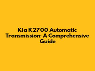 Understanding Your Kia K2700 Automatic Transmission