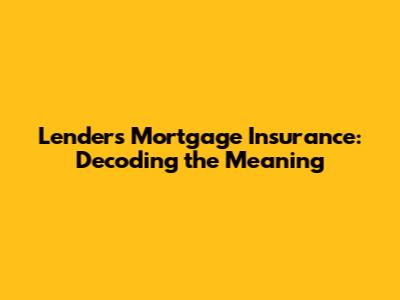 Lenders Mortgage Insurance: Decoding The Meaning