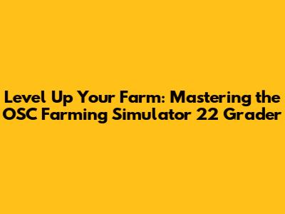 Level Up Your Farm: Mastering The OSC Farming Simulator 22 Grader