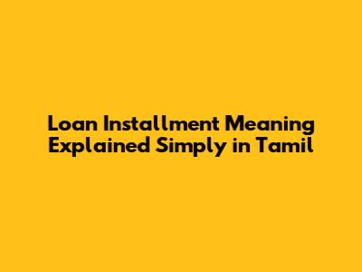 Loan Installment Explained Simply In Tamil
