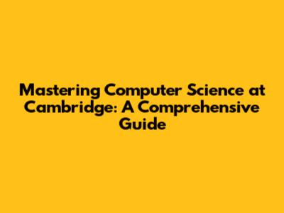 Mastering Computer Science At Cambridge: A Comprehensive Guide