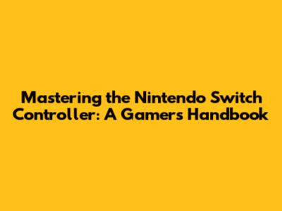 Mastering The Nintendo Switch Controller: A Gamer's Handbook
