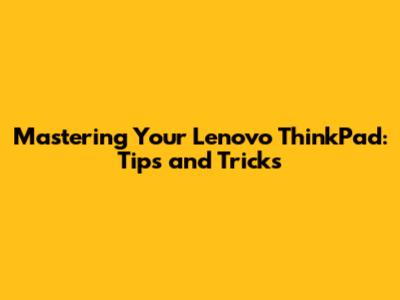 Mastering Your Lenovo ThinkPad: Tips And Tricks